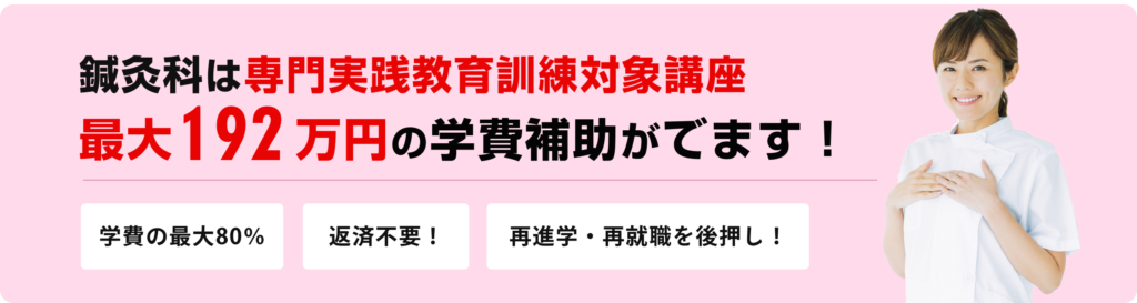 長崎校:鍼灸科は「専門実践教育訓練給付制度」対象講座!最大192万円の学費補助金がでます。