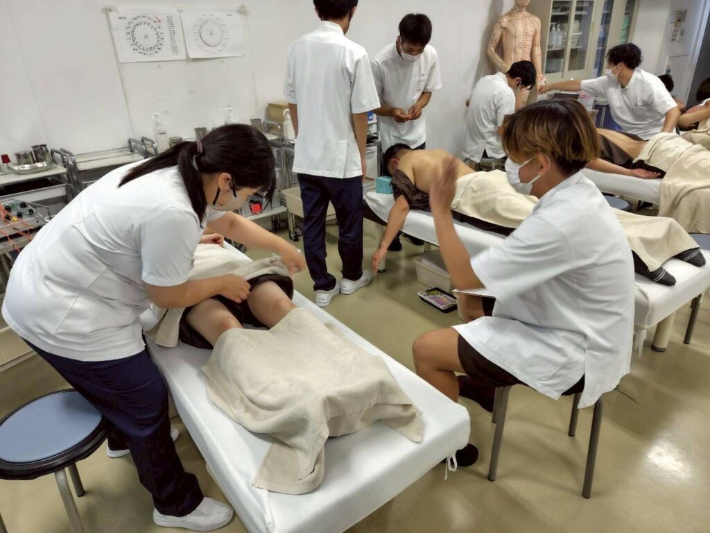 鍼灸科では3年生になると、下級生に対して鍼灸施術に練習をします🔥