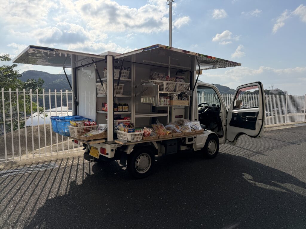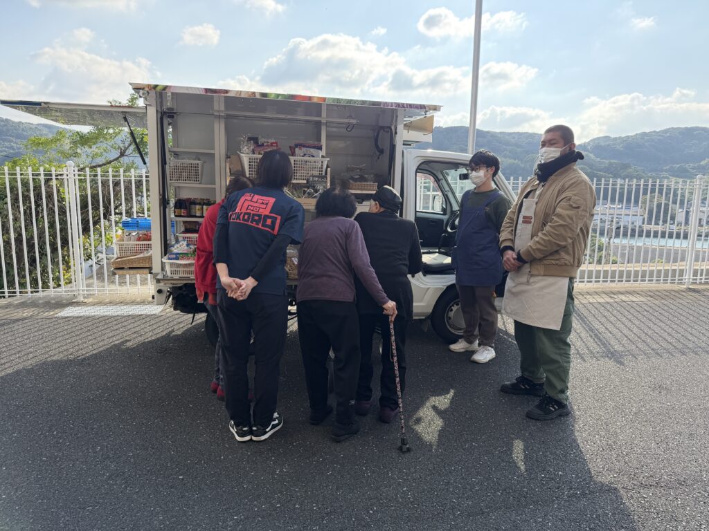 移動販売に来ていただきました! 入居2025.11.24 壱岐のこころに移動販売がやってきました ご協力いただいたのはいちばん館さんです。 自分で選んで、自分で購入できることがとてもうれしそうに語られるご利用者様もいました。