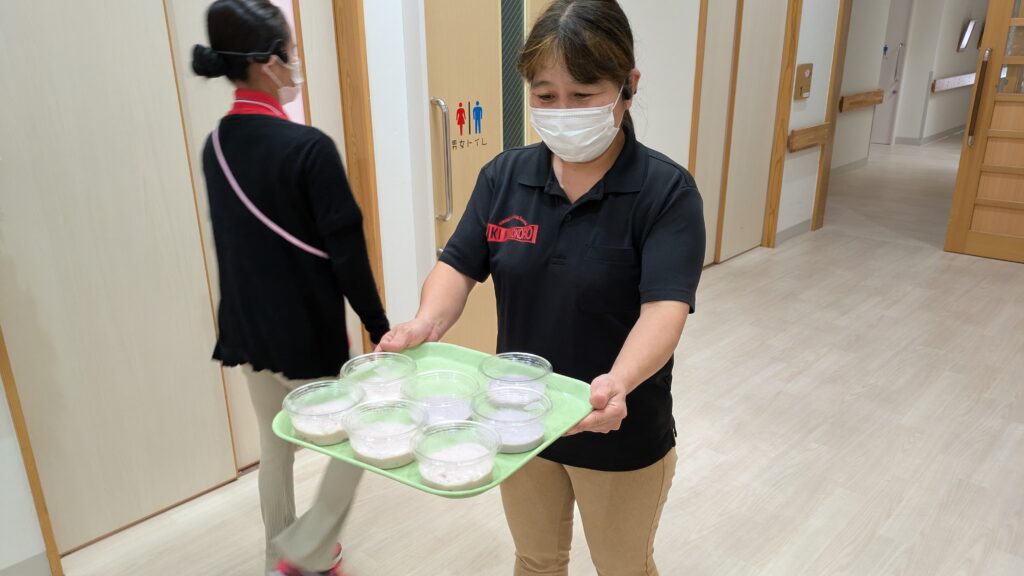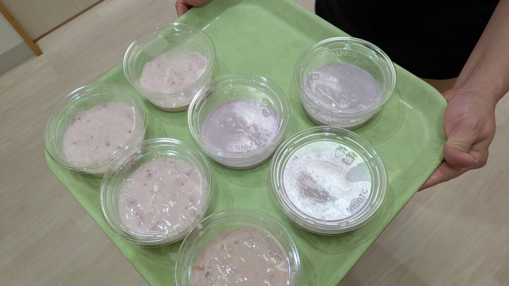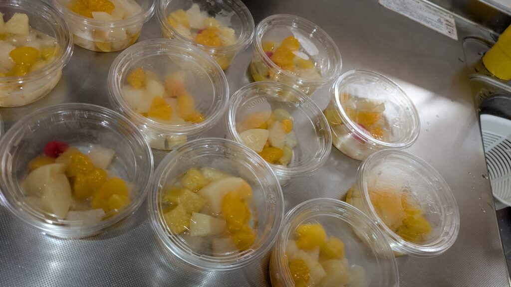 みなさまと協力してフルーツポンチやフルーチェを作りました。