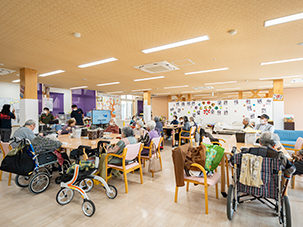 通所のデイサービスと同じ空間で行う共生型となっています。