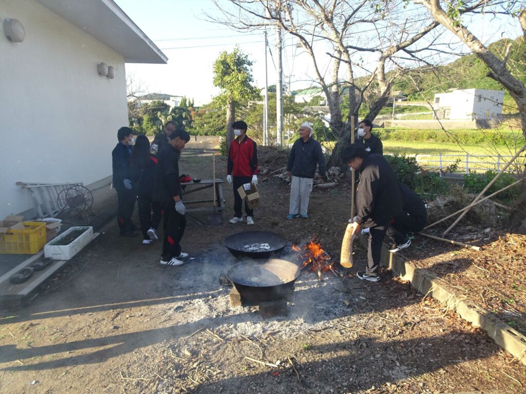地域清掃活動 投稿日 2025年12月1日 著者 iki_admin カテゴリー Uncategorized 介護の日にちなんだ地域清掃活動を11月10日に全学生を5班に分けて行いました。普段お世話になっている地域のごみを拾ったり校舎周辺の清掃を中心に行いました。留学生の多くは、自国と比べて町の中のごみが少なく、日本はとてもきれいだと感心していました。清掃活動の後は今年も焼き芋会を開催しました。
