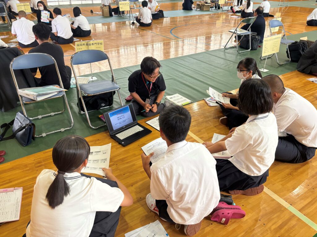 壱岐商業高校・壱岐高校のガイダンスを開催しました 投稿日 2025年10月24日 著者 iki_admin カテゴリー Uncategorized 10月15日に壱岐市内の壱岐商業高校・壱岐高校のガイダンスを開催しました。1年生、2年生を対象に行いましたが、介護科はもちろん理学療法科への関心が高く、たくさんの高校生が真剣に話を聞いてくれました。