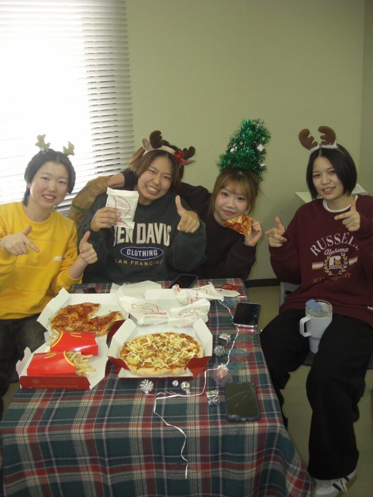 スポーツ柔整科1年生昼休みの様子 投稿日 2025年12月25日 更新日 2025年12月26日 著者 佐世保校 カテゴリー ブログ 佐世保校スポーツ柔整科、お昼休みの様子です👀 お昼休みに1年生教室を覗いてみると、クリスマスパーティーを開催していました✨ 楽しく盛り上がっていた様子でした👍