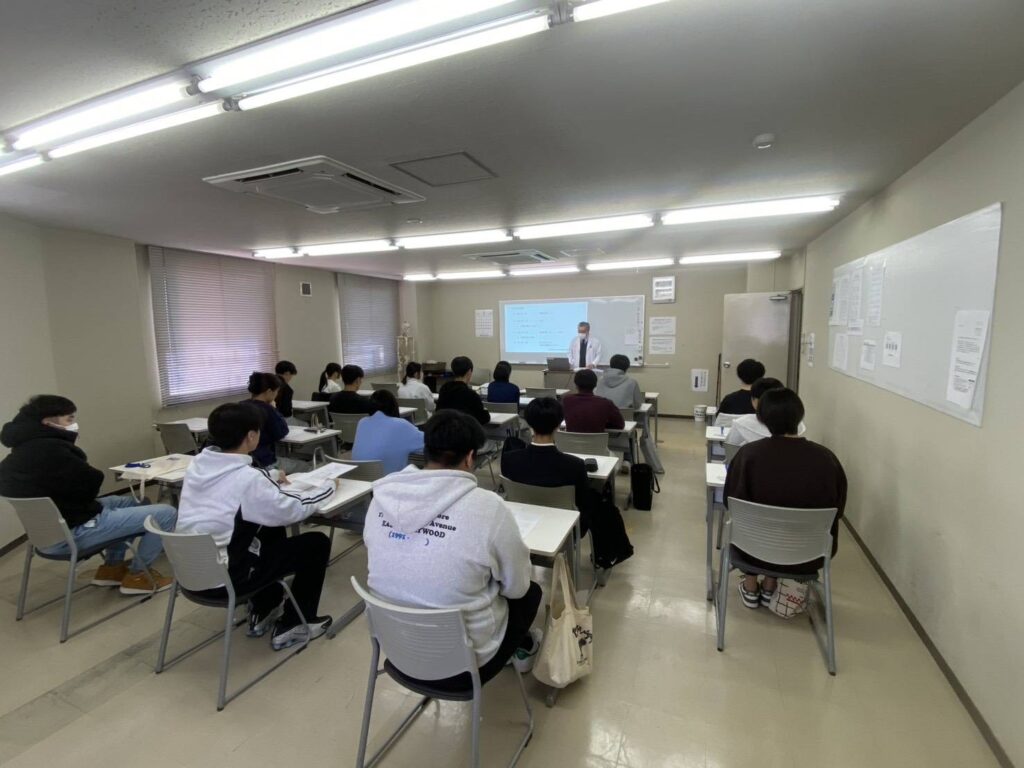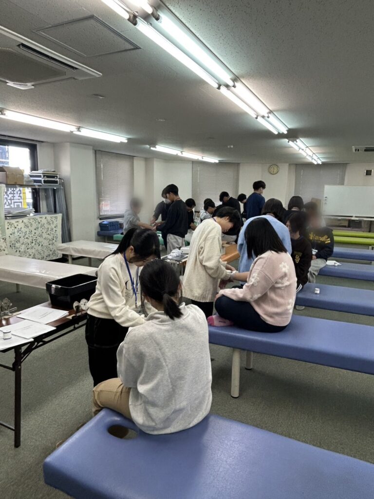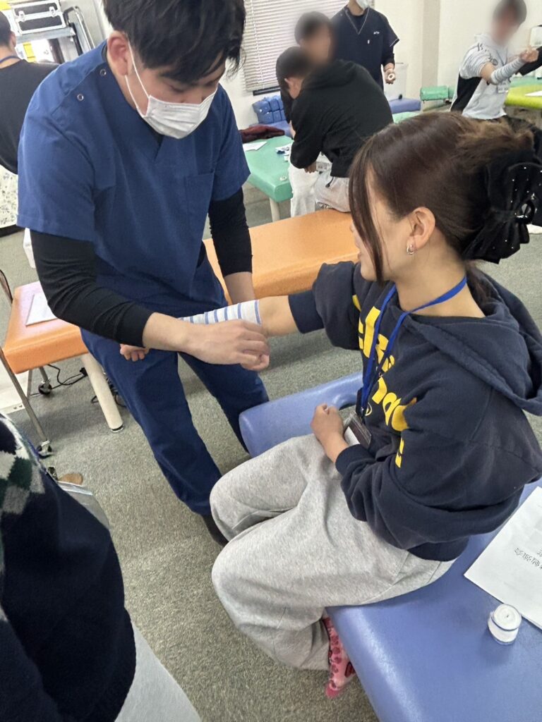 入学前基礎勉強会📚 投稿日 2026年1月28日 著者 佐世保校 カテゴリー ブログ 佐世保校の様子です👀 先日、第3回入学前基礎勉強会を行いました✨ 来年度入学予定の学生に対して、学校での過ごし方や模擬授業など入学前に行っています😊 今回は、座学と包帯実技の模擬授業を行い、みなさん楽しく上手に包帯を巻くことができました👍